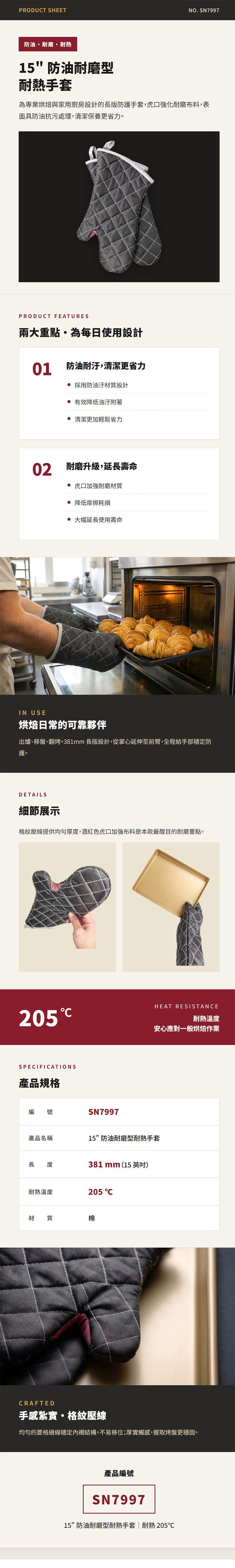 《SANNENG》15"防油耐磨型耐熱手套-耐熱205℃ SN7997